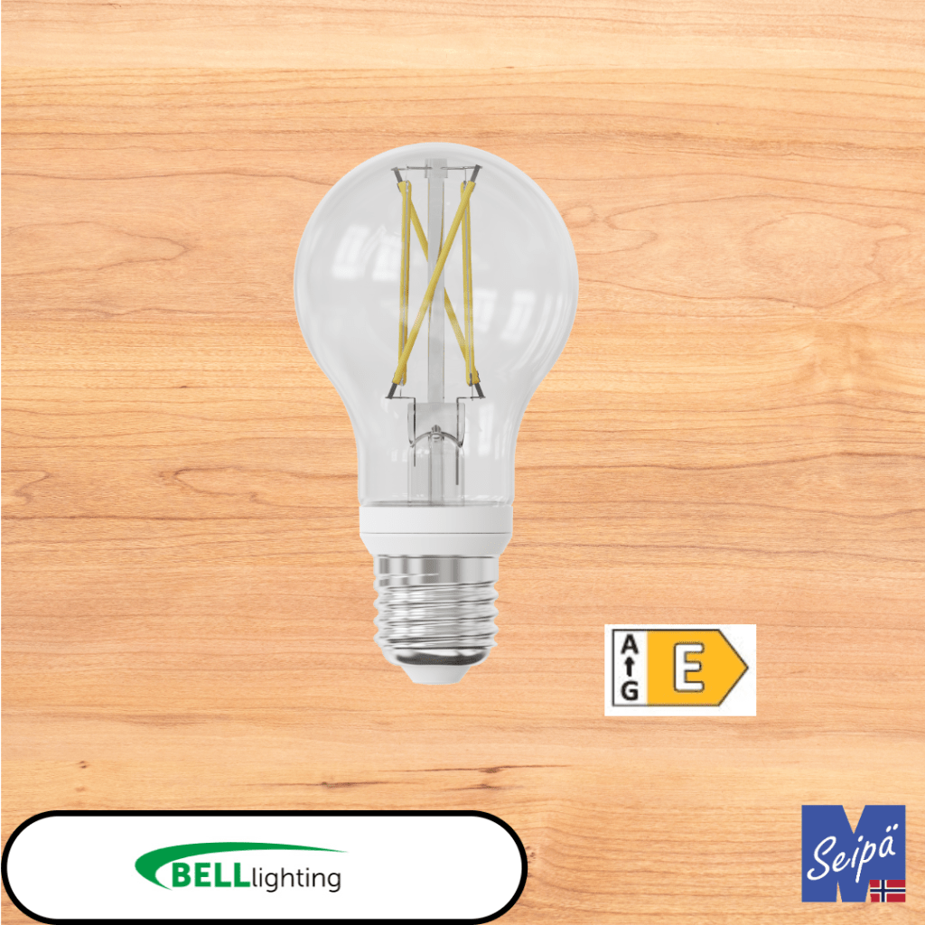 - LED-lyskilde A60 normal klar filament EEK=A 806 lm CRI80 3,8W/827 Dimmebar (=60W) – BELL Art.nr.60871